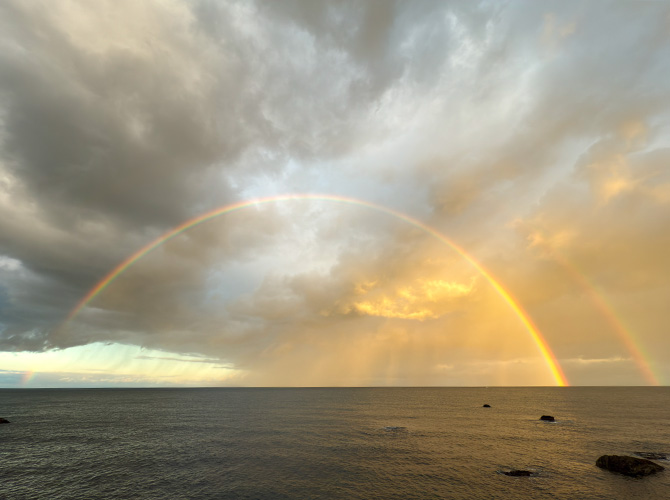 という事で、出かけた途中で海に虹が出て来て、きれいだと思っていたら、虹が二重になった(‘;’)