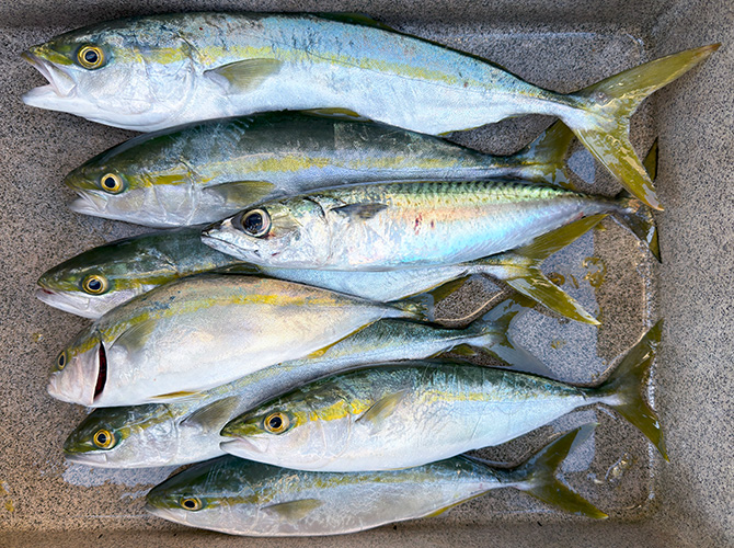 昨日釣ったアオコがまだ有ったので、今日はアオコを3匹位持ち帰れば充分かと思っていたが、後から釣れた方がサイズが良かったので、結局7匹と健康のためにサバも持ち帰り。