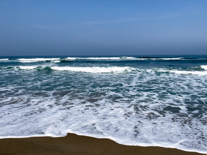 沿岸近く 水深5m 波約 3.5m(砕波直前、これより浅くなると波が崩れる)