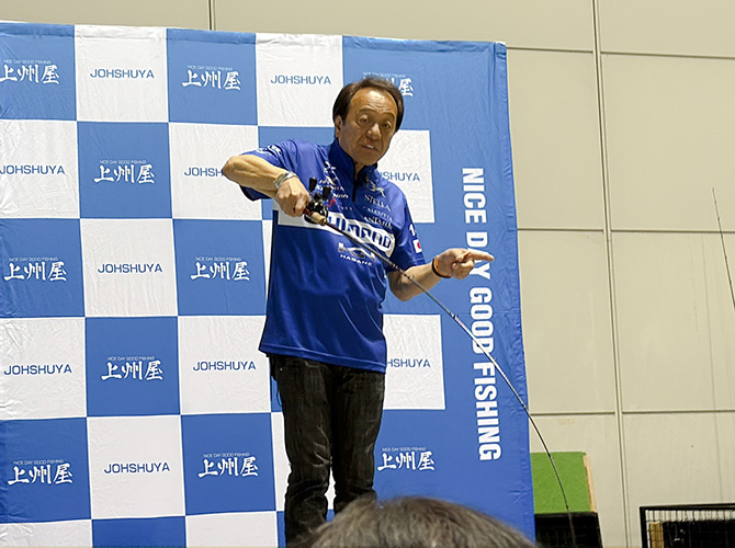 ▲シマノ フィールドテスター?の村田基さんのキャスティングについての講演